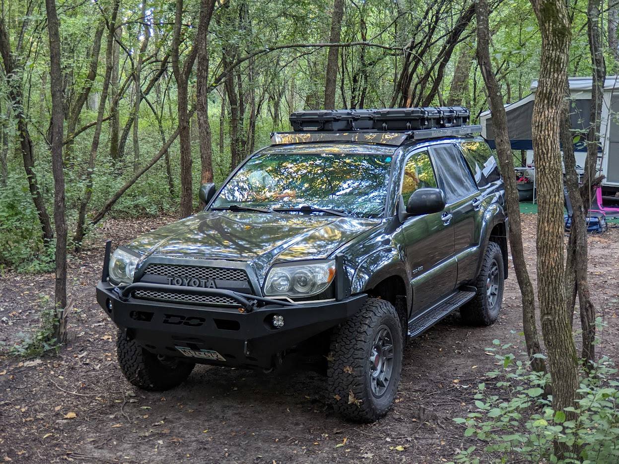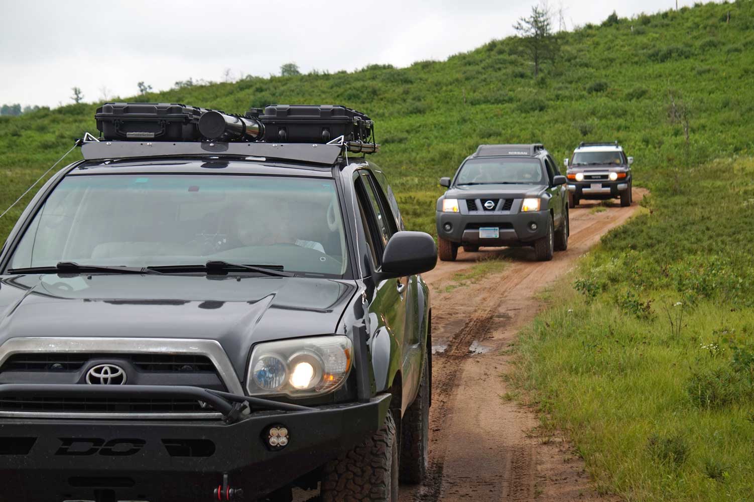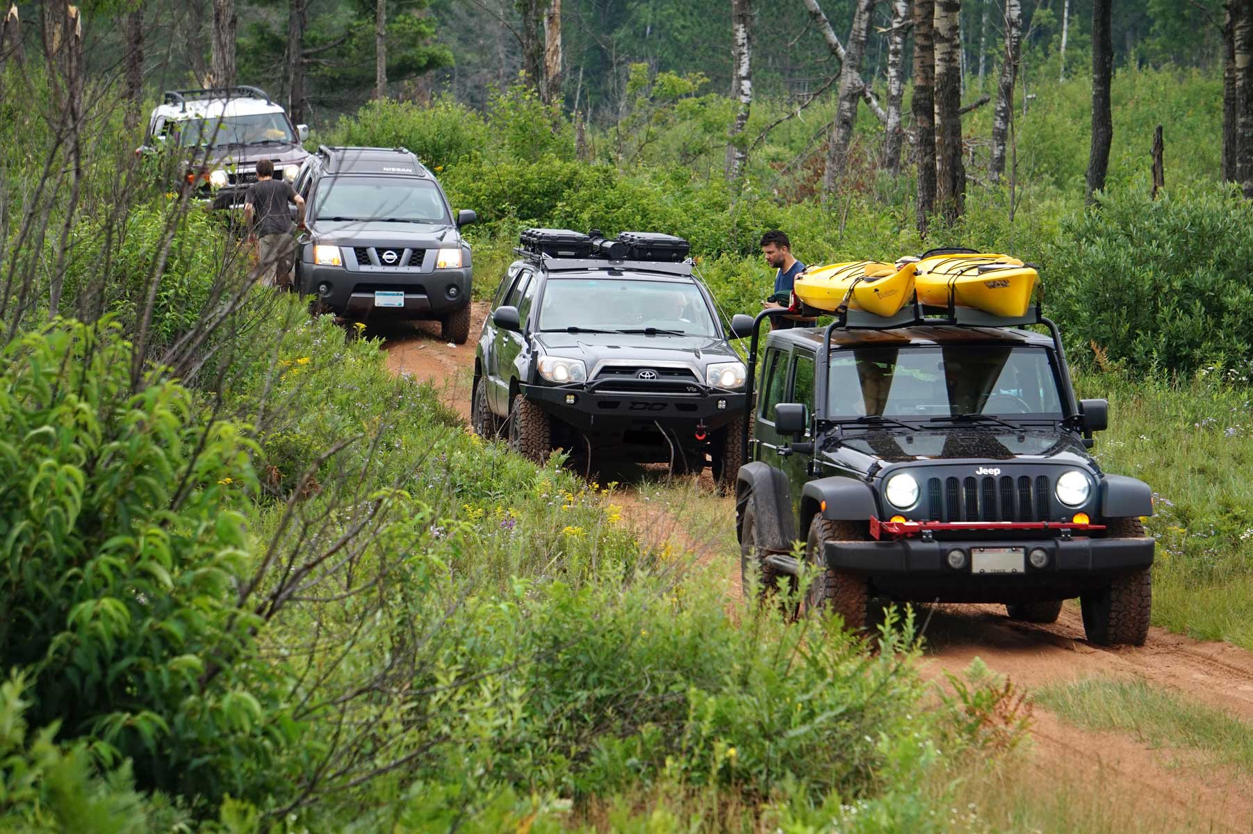 - For rough trail driving, I keep my axe and bow saw handy up there, and recovery gear that’s accessible above the fray if you get into something deep.
